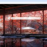 Experience the serene beauty of a traditional Japanese garden during peak autumn season! This stunning composition captures the essence of fall through elegant wooden frame windows that open onto a breathtaking landscape of fiery red and orange maple trees. The scene perfectly embodies the Japanese concept of “momiji-gari” (autumn leaf viewing), showcasing nature’s vibrant transformation in all its glory.