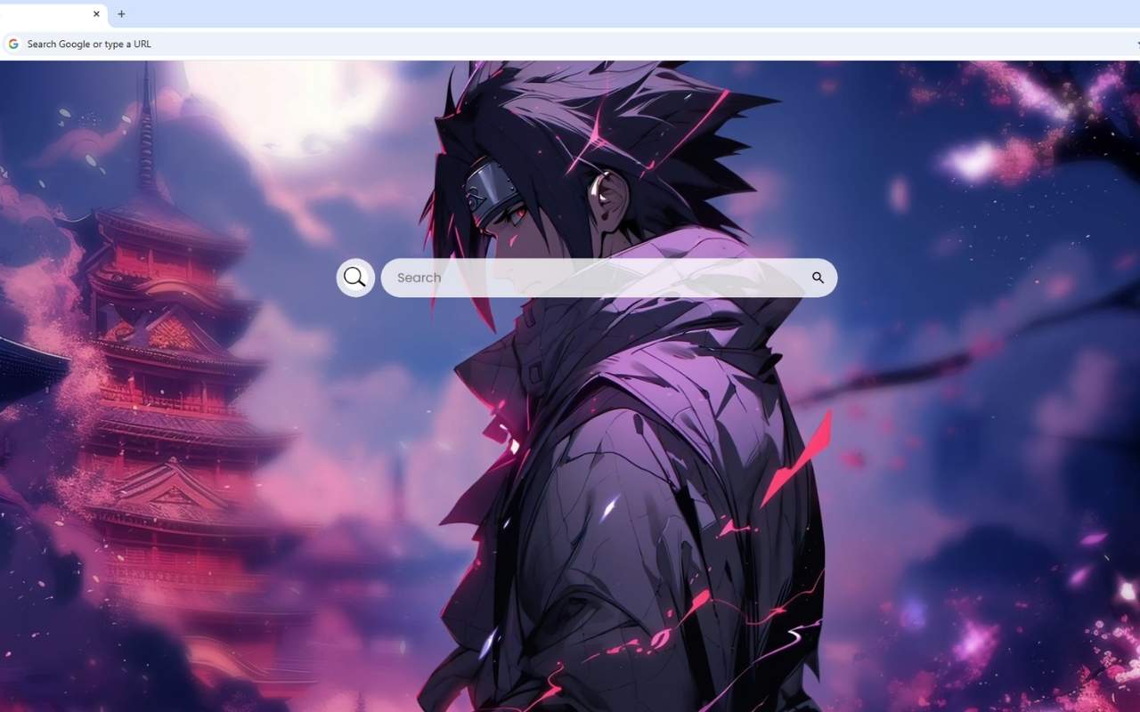 Experience the solitary beauty of the last Uchiha standing beneath a moonlit sakura sky! This breathtaking composition captures Sasuke Uchiha in a moment of quiet reflection, his iconic silhouette framed against a dreamy twilight atmosphere where Japanese tradition meets supernatural power. The legendary shinobi stands with his back turned, his spiky black hair crowned with elegant highlights of crimson and purple that mirror the enchanted environment surrounding him.